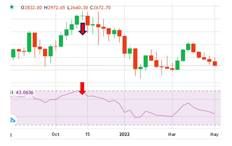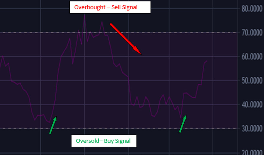From the image below, the price falls sharply when the RSI hits the 70 mark. This is because the asset was already overbought and traders were selling.