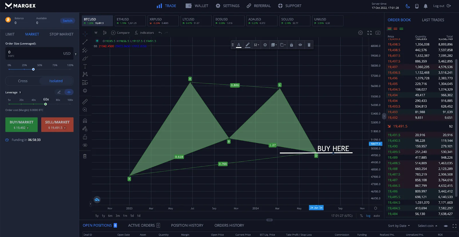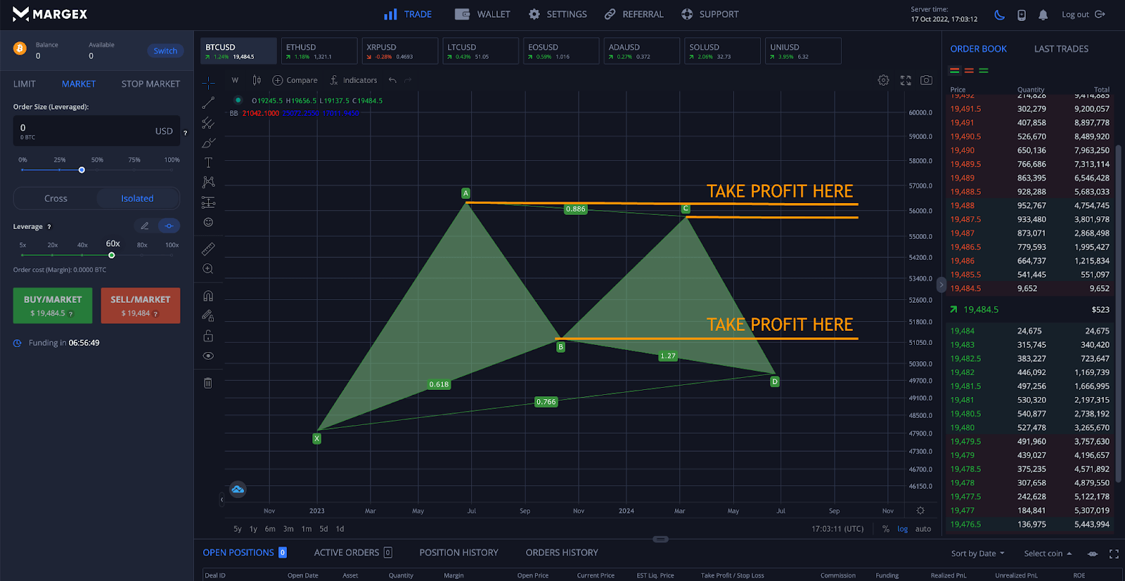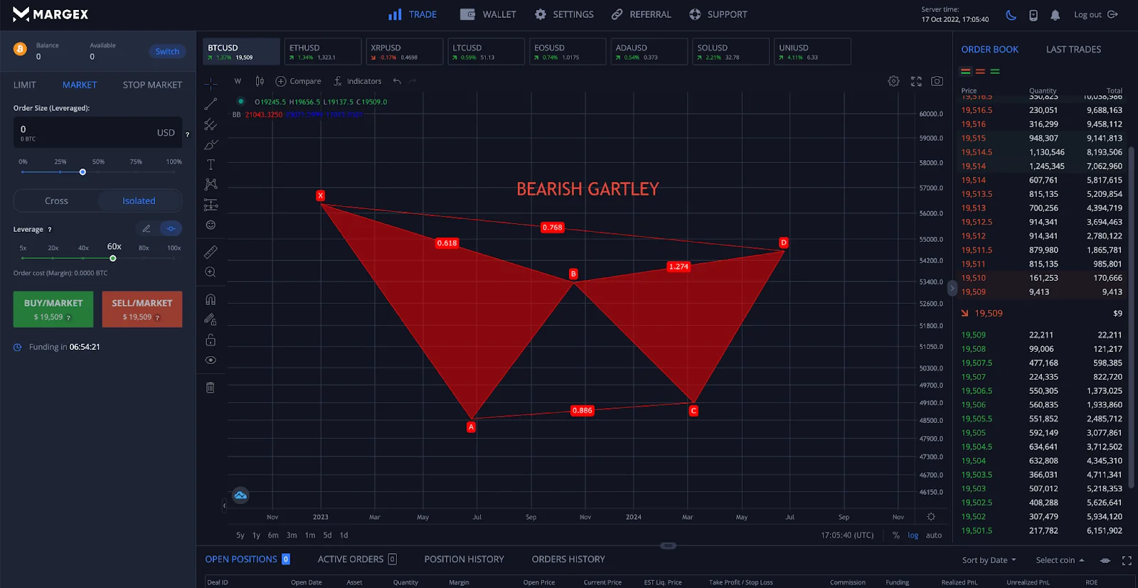 The Margex trading platform includes powerful technical analysis tools built directly into the platform. This allows traders to go at their own pace, properly identify, and successfully trade a gartley pattern.
