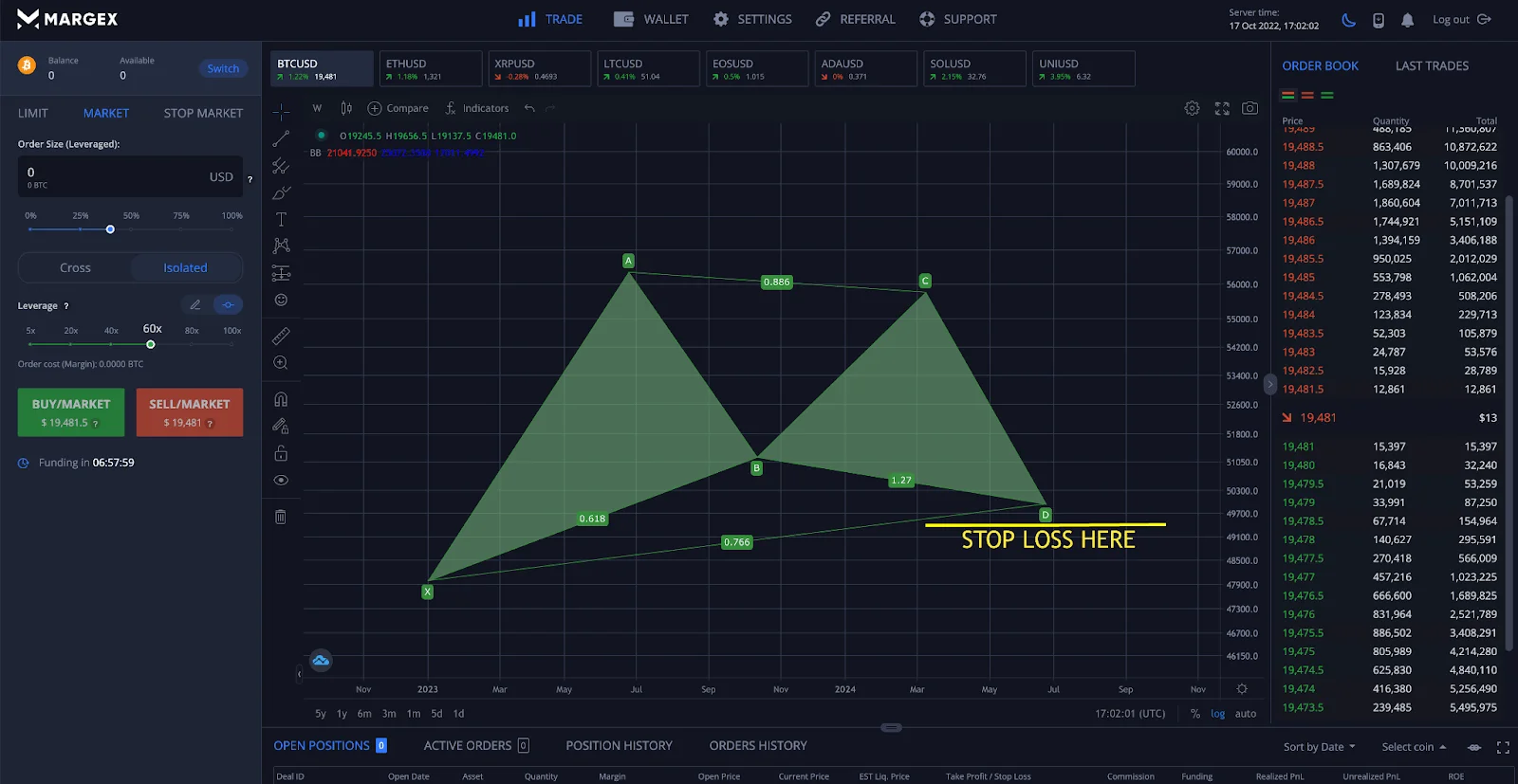 Margex includes access to both Fibonacci retracement tools, and the XABCD drawing tool that makes drawing harmonic patterns like the bullish or bearish gartley like a breeze.