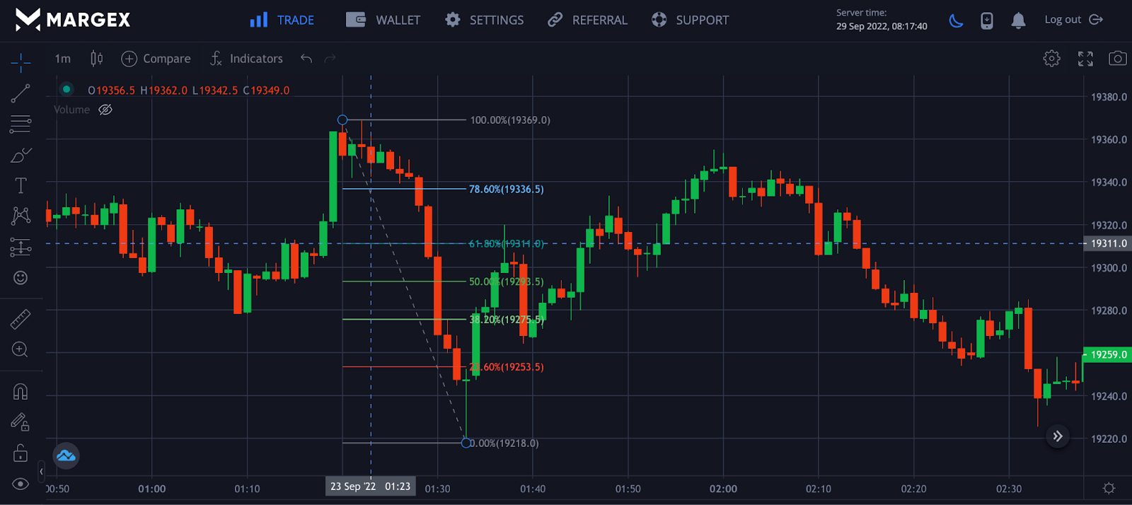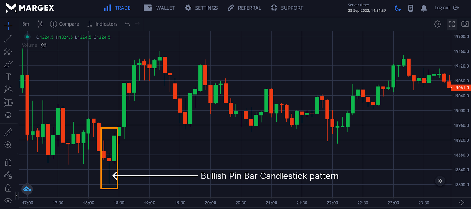 Margex’s unique user interface makes it simple for even inexperienced traders to trade and use technical analysis tools to identify trend reversal patterns, such as the pin bar candle pattern.