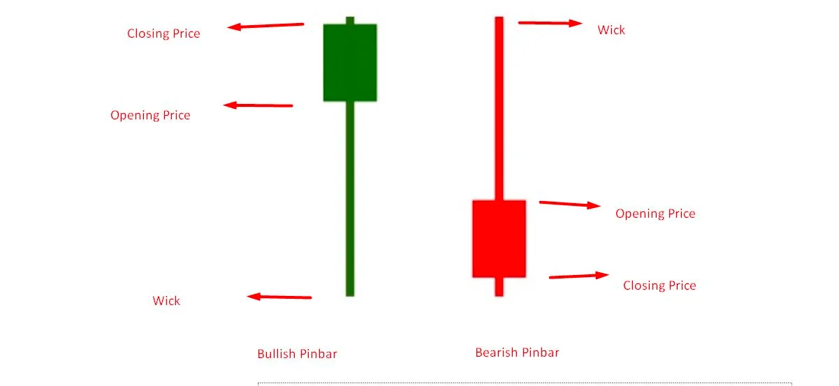Most traders describe the pin bar candlestick pattern as needlelike because of its long wick. The wick appears top and bottom of the candlestick, with one of the wicks looking longer than the other.