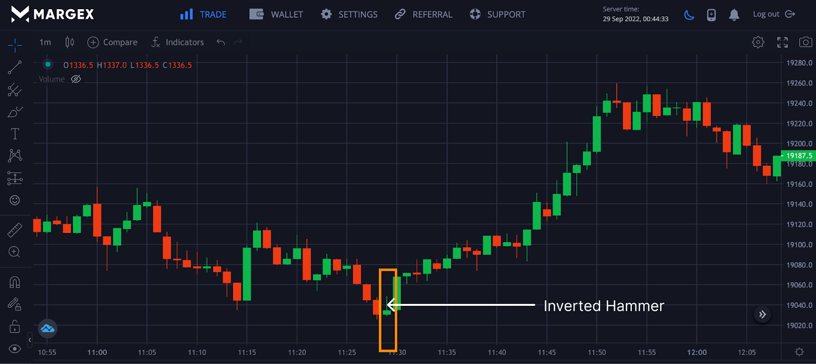 The appearance of the inverted hammer signaled a potential price change from a downtrend to an uptrend. The Inverted hammer should not be traded alone for better and more efficient results.