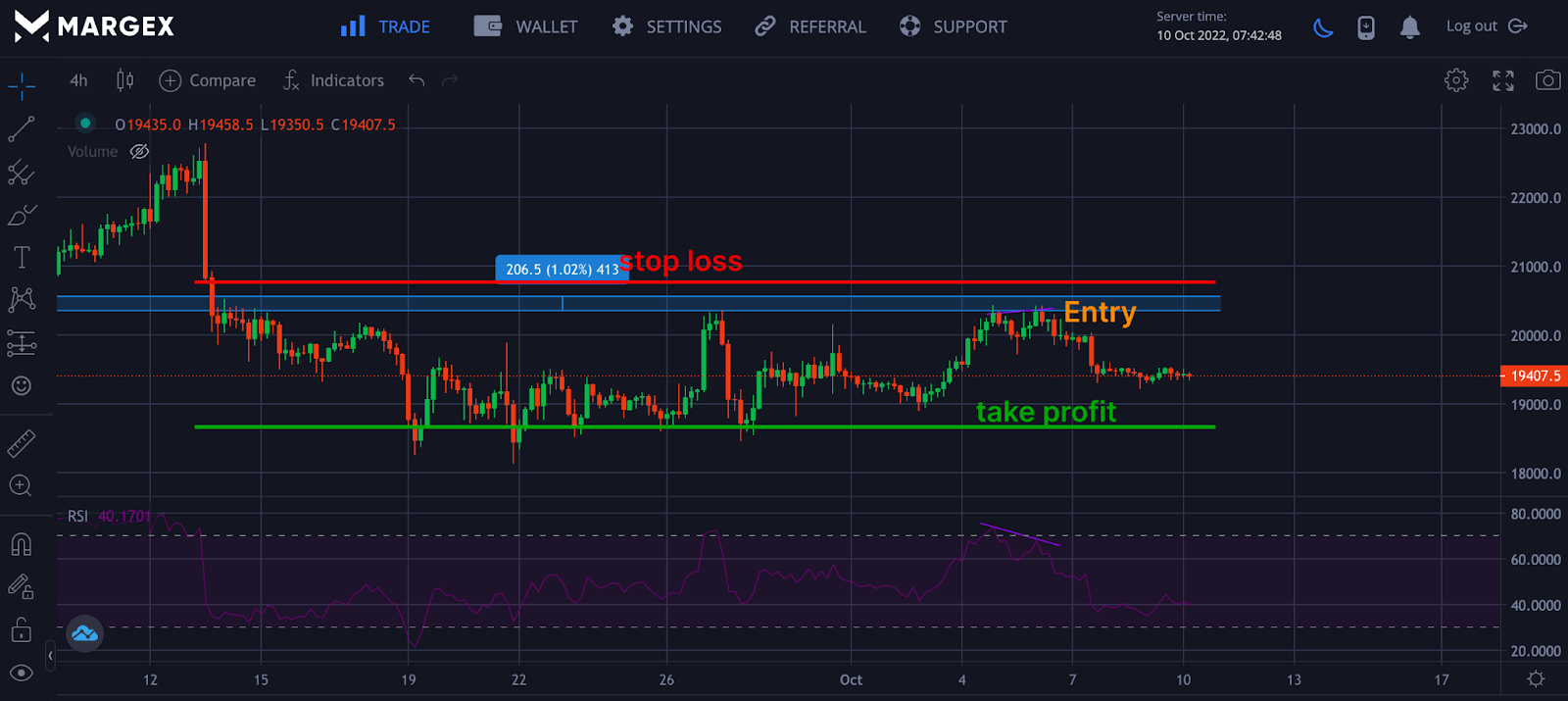 From the image above, the BTCUSD pair showed a hidden bearish divergence close to the supply zone, indicating a potential trend reversal was imminent in the four-hour timeframe. It would be wrong to open a long position at the supply zone unless this area was breached or flipped into a demand zone. A good trader would look for a short opportunity when all criteria have been fulfilled for that trade.