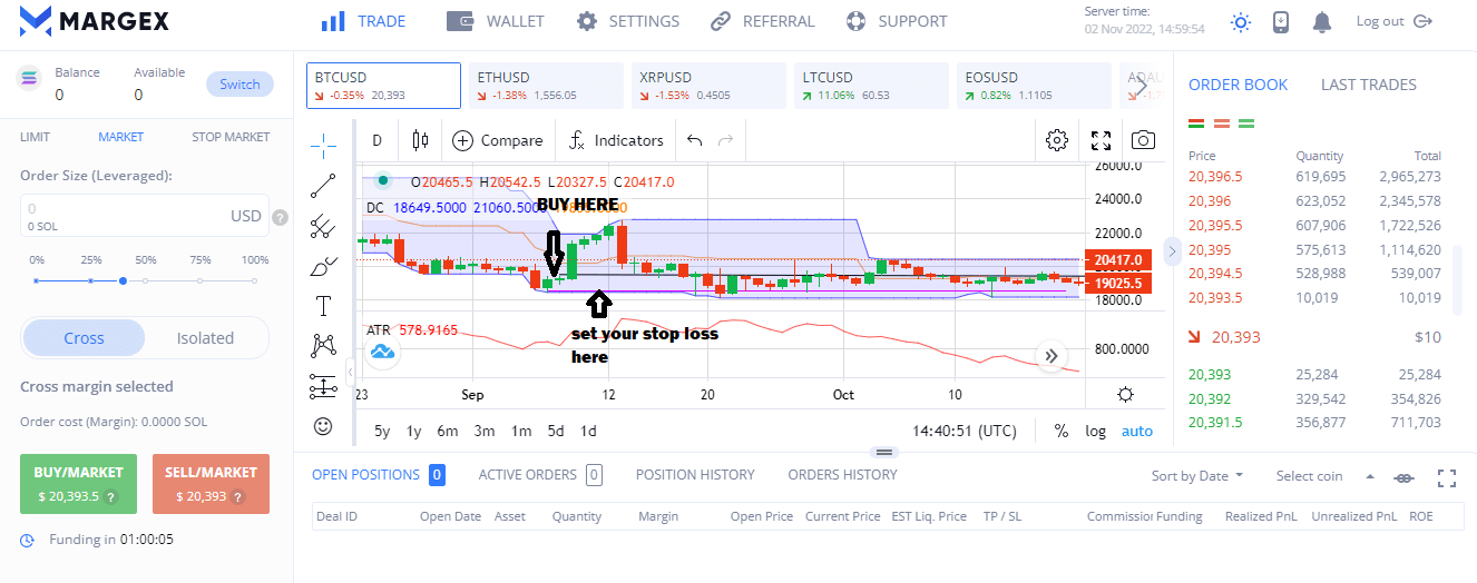 Click on trade and select the BTC/USD pair for this turtle trade test.