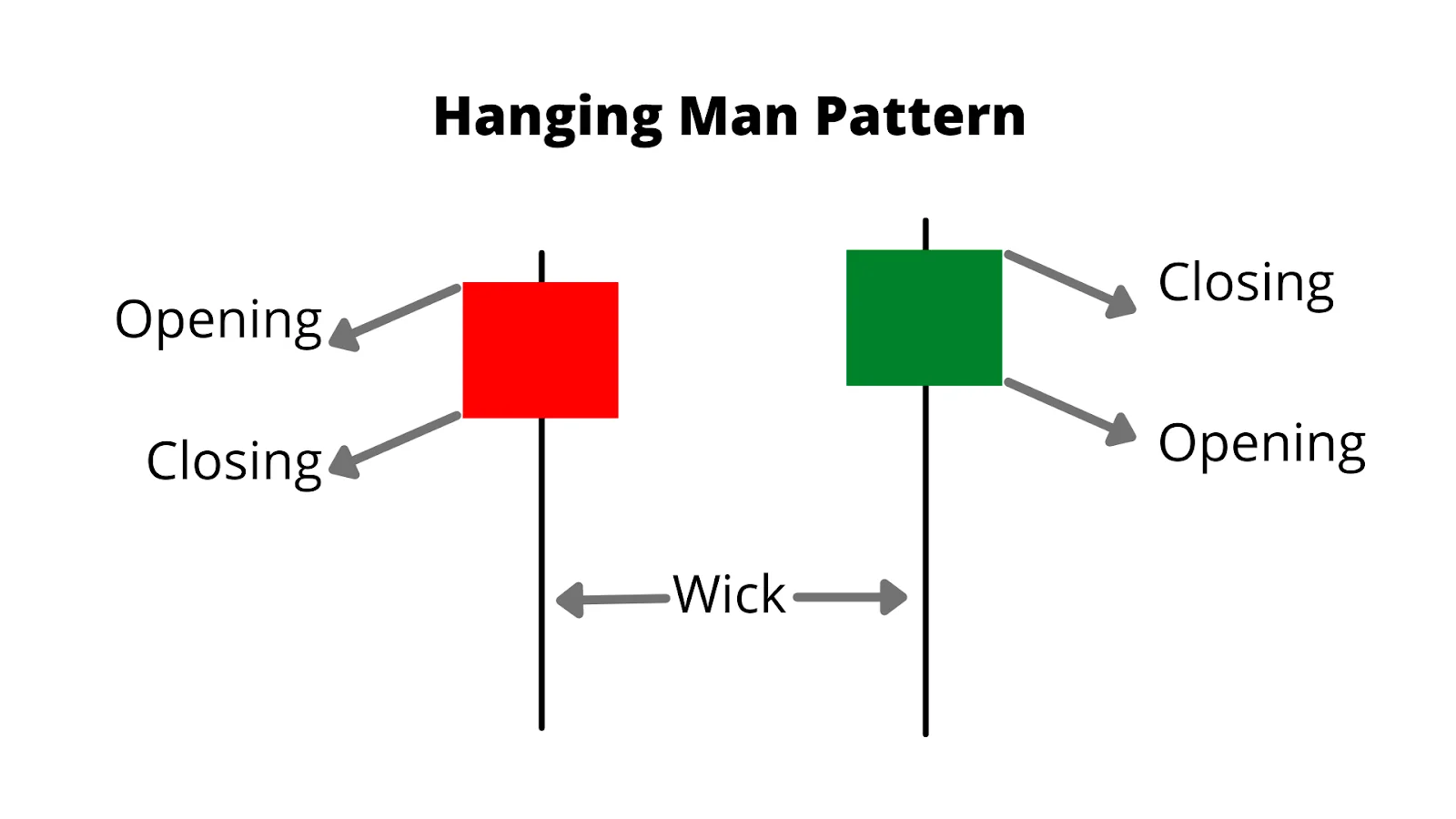 The hanging man candle is similar to the hammer pattern when it comes to its opening and closing price, with a long bottom wick accompanying it with a wick or shadow as long as twice the body size.