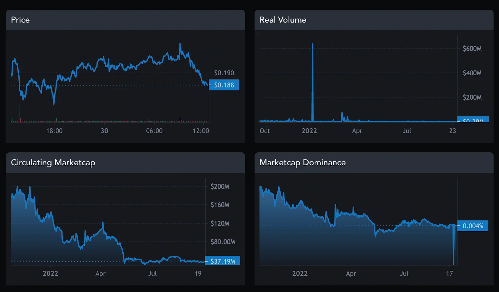 Currently, Wanchain is worth $0.189 with a 24h high of $0.194 and a low of $0.1812. In the last 24 hours, there was a 4.47% increase in its price level. It has experienced some increase and a slight decrease in the previous 7 days but has remained far away from its ATH with a 98.10% decrease.