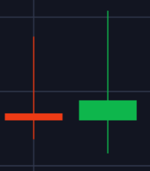 The body of the chart is green if the currency pair ends the period with a more excellent value than it did at the beginning of the period. The peak for the period is represented by the top of the wick and the low by the bottom. The two long wicks show the lack of a clear trend, suggesting that prices closed away from the period’s extremes.