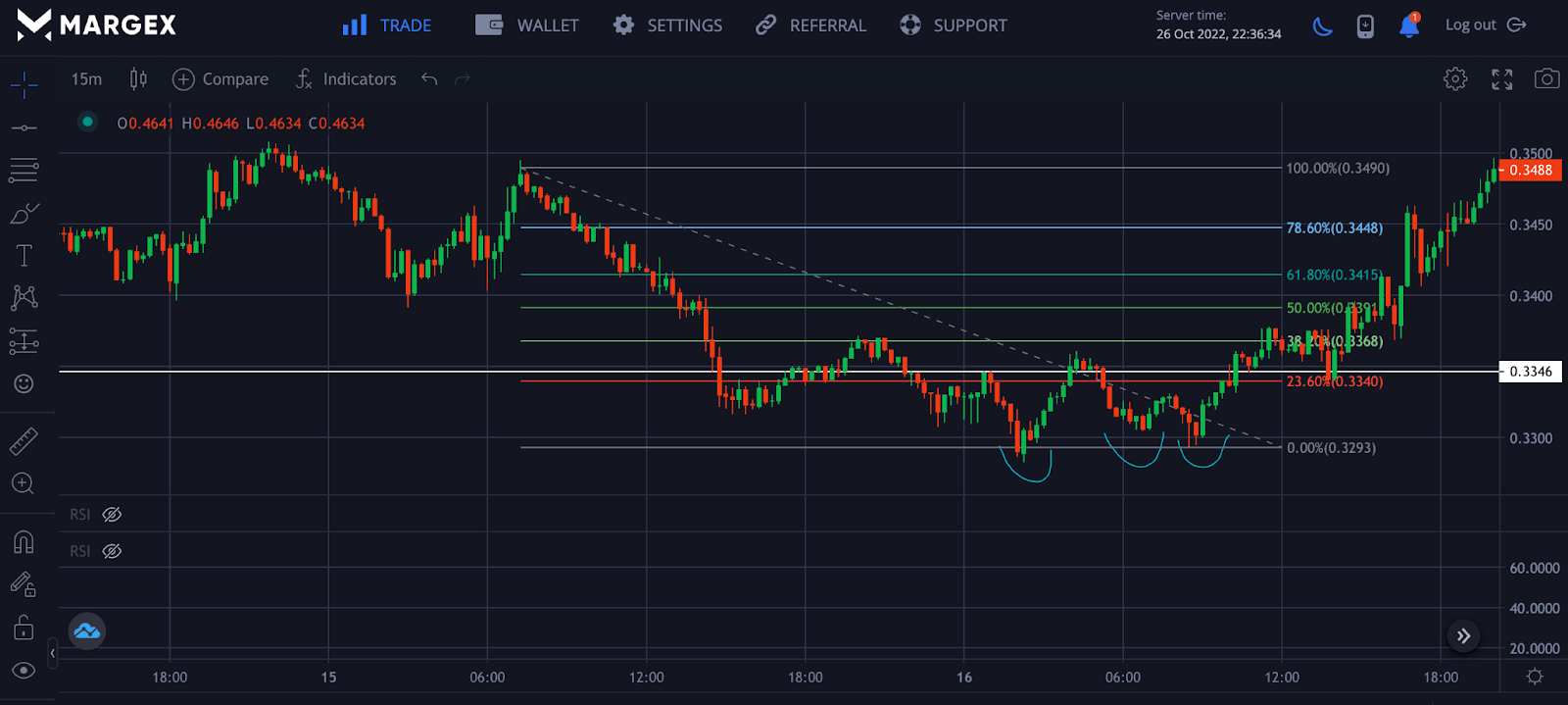 The Image above shows XRPUSD forming a triple bottom pattern after its bearish price movement with a potential break of the neckline resistance as the price of Ripple (XRP) continued its price rally to the upside. On spotting this pattern, a trader would wait for a clear confirmation to open a position. Although this strategy is highly successful but should not be traded alone as this could mean price distribution before a further downtrend in price. It is best to confirm with other strategies like the Relative Strength Index (RSI), Moving Averages, and Fibonacci retracement ratios for better confirmation and reduced risk.