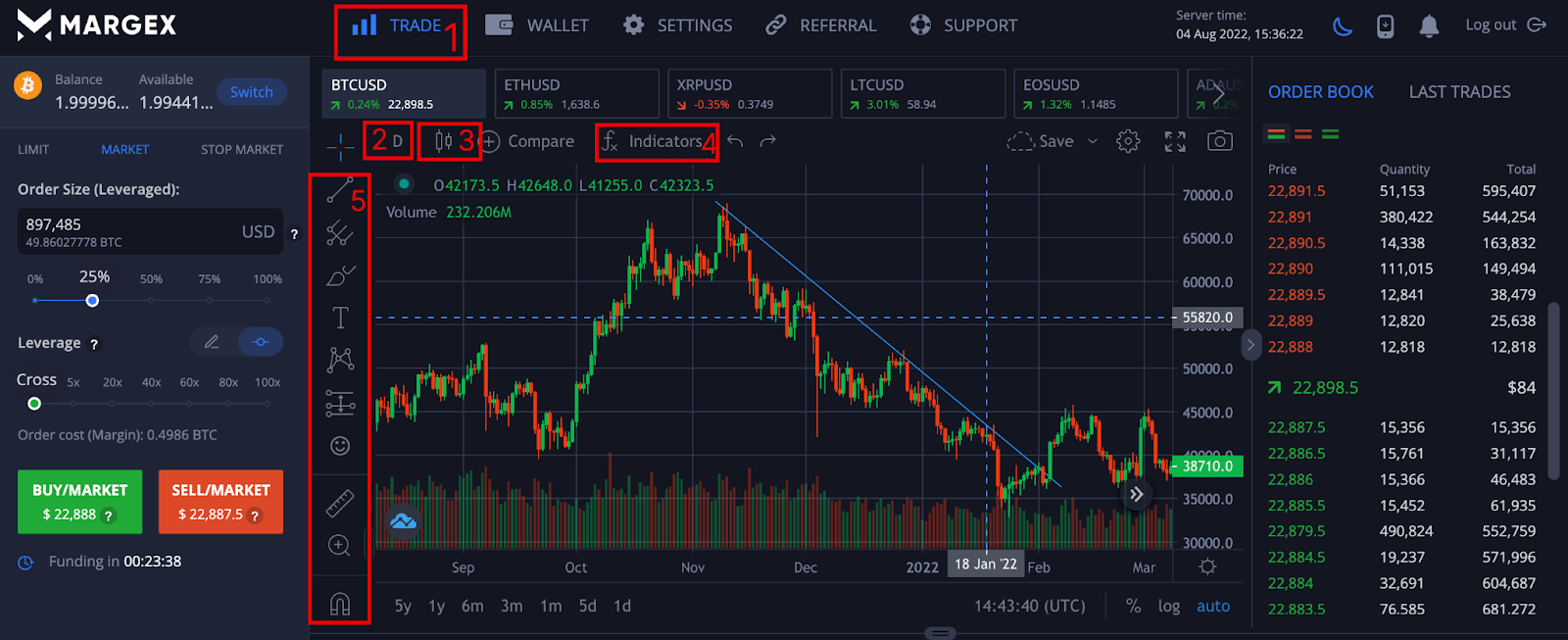 Assuming you have a login to the Margex platform, you will have access to their technical analysis tools, which are built with real-time prices to help you make money trading.