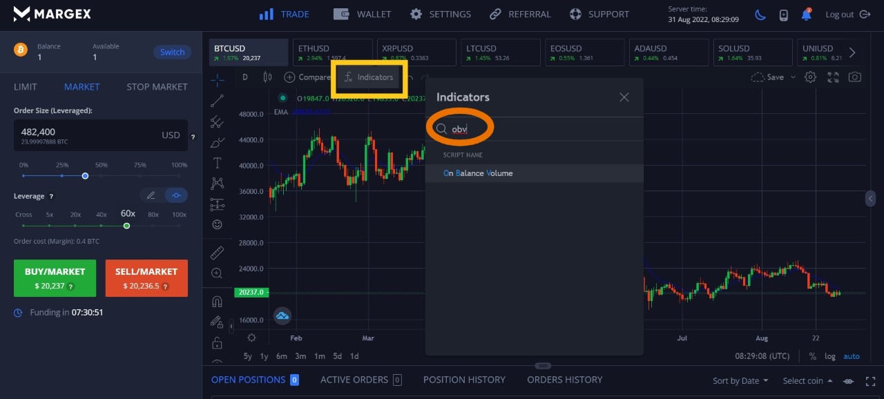 Let us show you how to find and use the on balance volume indicator on Margex.