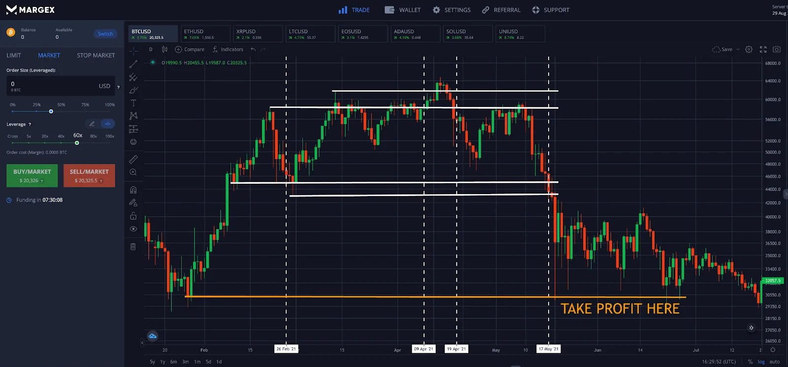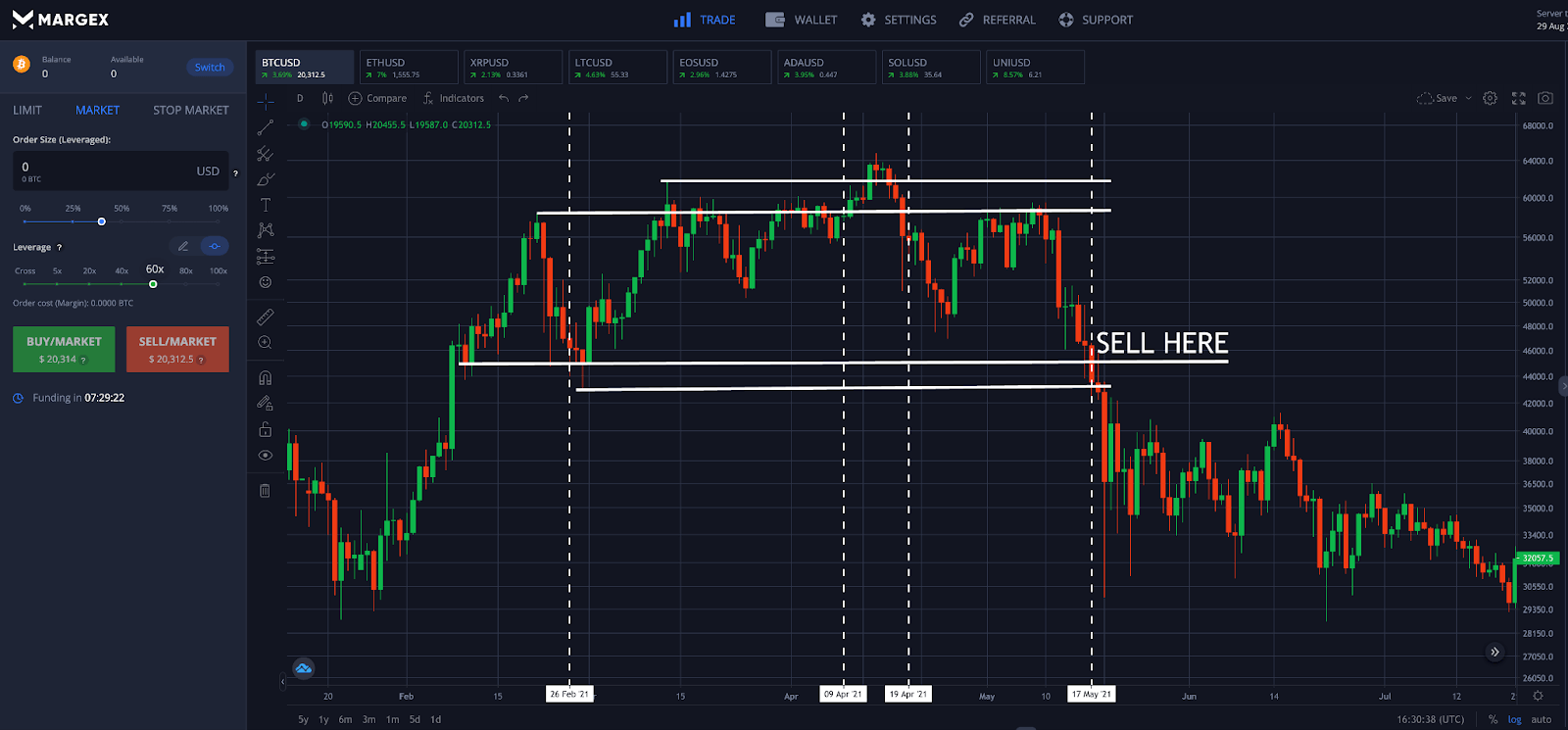 The innovative Margex margin trading platform offers built-in technical analysis tools to help crypto traders chart and trade Wyckoff patterns. The platform also includes access to powerful technical indicators like the Relative Strength Index, Bollinger Bands, Ichimoku Cloud, MACD, Fibonacci retracement, and more. It also lets the user toggle between Japanese candlesticks and bar charts as Wyckoff recommends.