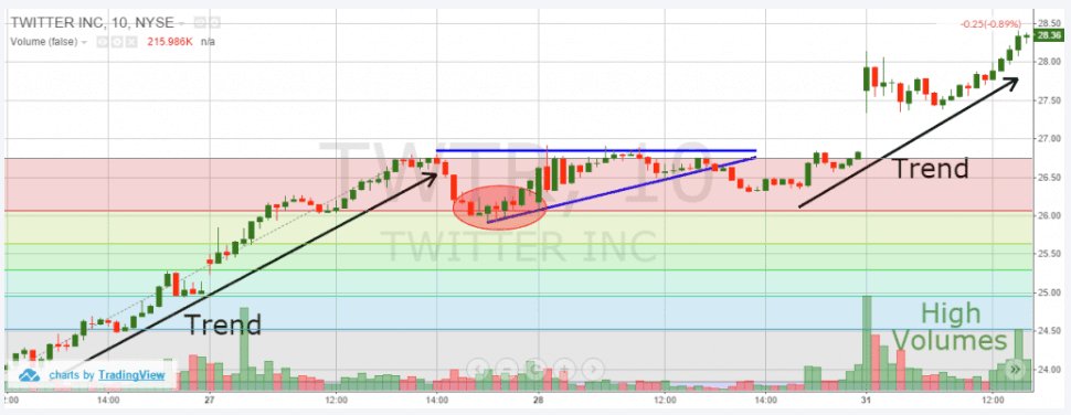 Le linee di tendenza rosse in basso indicano due oscillatori, il MACD e l’RSI. Entrambi tendono notevolmente al rialzo prima della rottura netta dei prezzi.