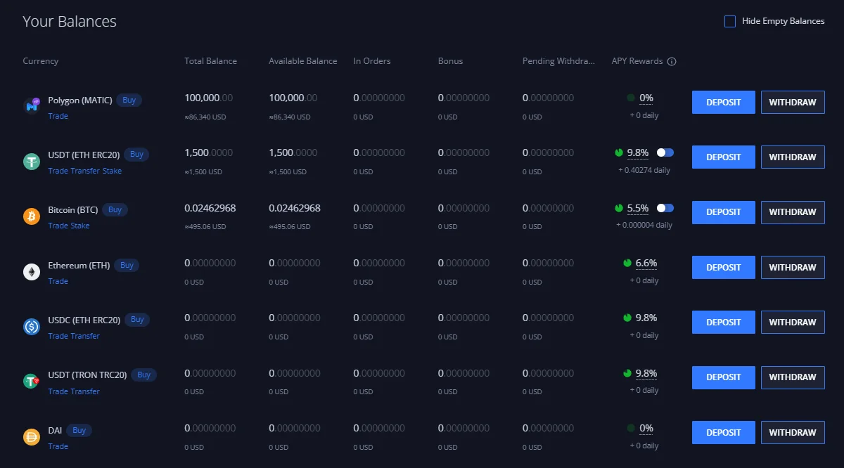 Em segundo lugar, para começar a operar, você precisará fazer um depósito em sua conta. Para fazer um depósito, acesse a “página Carteira” e clique em “+ Depositar”.